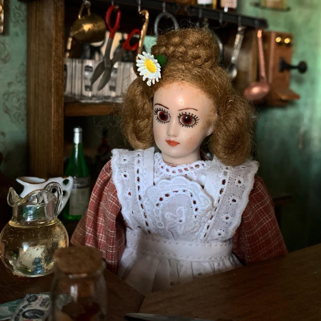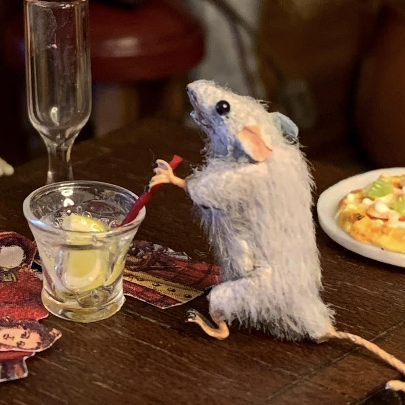 Petra’s origins are not known, but she is a very well liked rat. Petra has become more aware of the world around her. Since learning to read, she has become obsessed with cooking and is a rabid Anglophile. She enjoys spending time with her friends while in original form as well as inside her porcelain golem in the red gingham dress. This one-eyed rat with a crooked tail is very grateful for her happy life.
